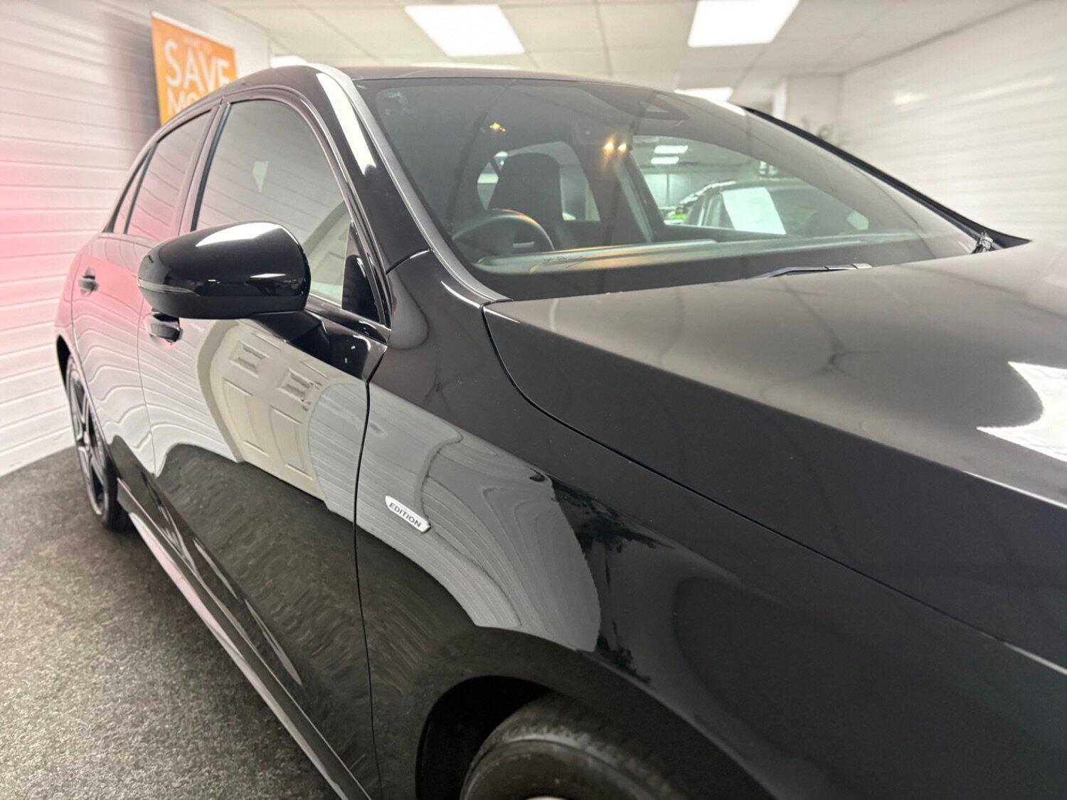 This 2021 Mercedes Benz A Class A180 AMG Line Edition (Executive) boasts exceptionally low mileage for its year, having covered just 14,000 miles. Powered by an efficient 1.3 litre petrol engine and meeting Euro 6 emissions standards, this vehicle offers a refined driving experience. It comes equipped with a comprehensive Parking Package, featuring front and rear sensors along with a rear camera, making manoeuvring effortless. Inside, you'll appreciate the THERMOTRONIC luxury automatic climate control with a two zone system and display, ensuring optimal comfort for all occupants. Connectivity is seamless thanks to Smartphone Integration, supporting both Android Auto and Apple CarPlay, and dual Bluetooth interfaces for added convenience. The striking LED High Performance Headlamps with integrated daytime running lights provide excellent visibility.